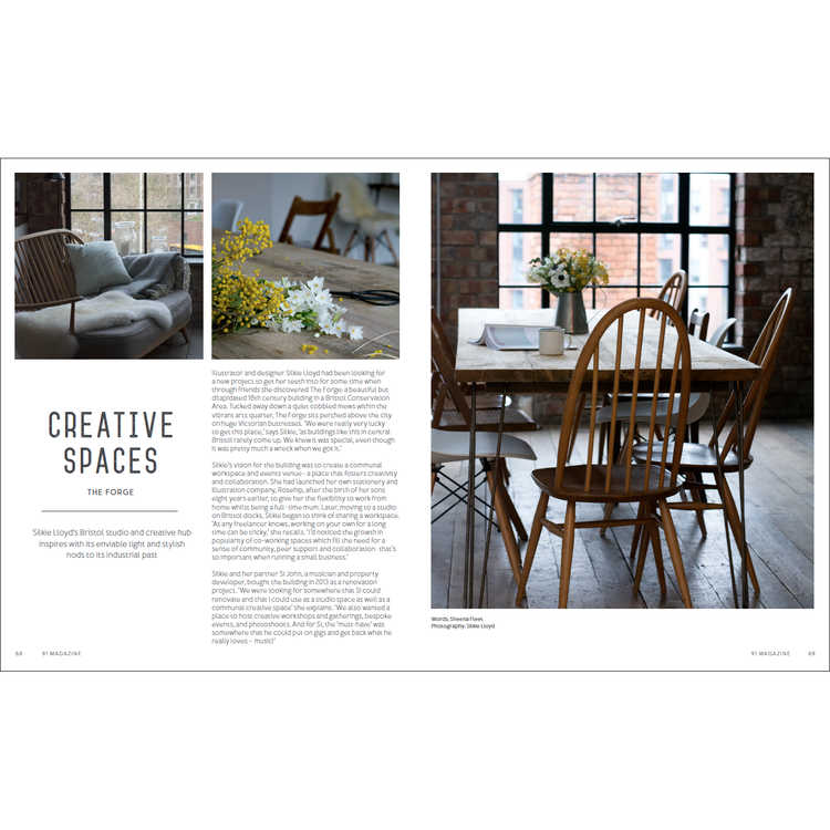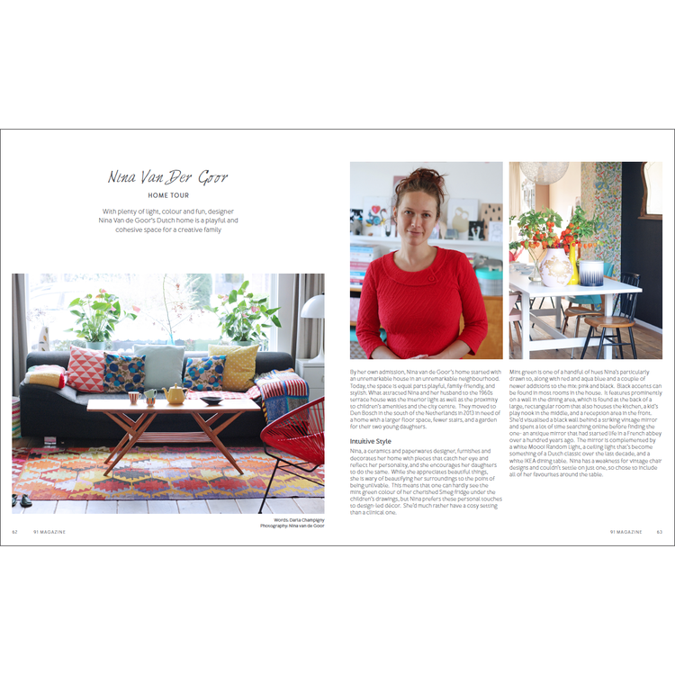 91 Magazine was launched in 2011 by founder and editor Caroline Rowland. The idea came about when Caroline felt that none of the mainstream magazines were capturing her interest any more, and she longed for a magazine that covered all aspects of creative living. She wanted beautiful homes that were attainable and oozed creativity while mixing vintage, contemporary and handmade looks effortlessly. She wanted craft and DIY projects that were modern, not twee, and that represented current trends, while also being accessible to all levels of skill. She wanted shopping tips, not only from the high street but from obscure corners of the world and the internet, so she felt she was always discovering the newest boutiques and designers. She wanted to read about creative lives and businesses that would continue to inspire her on her own journey while getting handy tips and advice. She wanted all of these things to be visually beautiful and well written. So instead of waiting for this to happen, she created 91 Magazine.