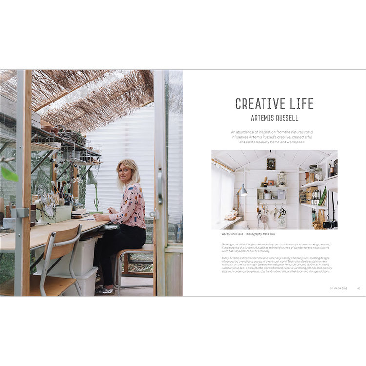 As always, we have a selection of wonderful creative interiors to share with you: The home, shop and workspaces of jewellery designer, blogger and all round creative Artemis Russell, the studio of Julia Grant of Winter’s Moon and the stunning shelves of Clevedon shop Midgley Green are just a little taster of what you’ll find inside.