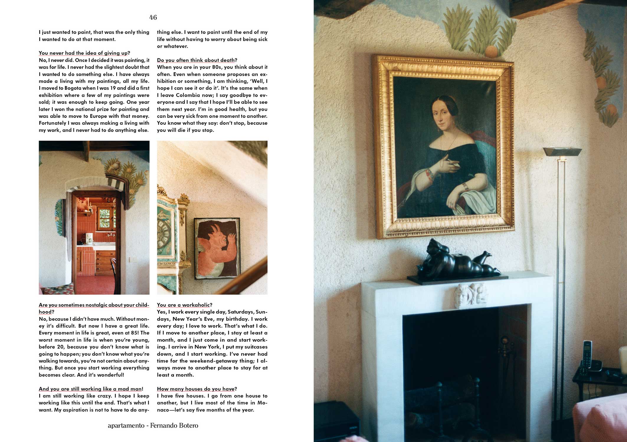 The issue features: Fernando Botero, Françoise Mouly, Nazario Luque, Oh Hyuk, Gertrude Abercrombie, Mélanie Scarciglia & Christophe Boutin, BV Doshi, Yvon Lambert, Sheila Heti, Jonathan Lyndon Chase, Nick Murphy, Ruben Östlund, Ingo Maurer, Campbell Addy, and Ruth Rogers. Plus: ‘Helena: A Shadow in the Plaza Real’, a comic by Nazario Luque, and The Crystal and the Flame, the Sardinia of Alberto Ponis.