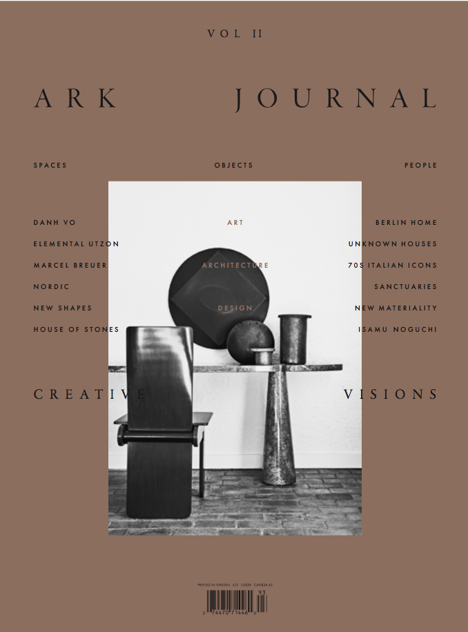 At Ark Journal we explore the spaces around us, the objects we put in them and the people who make them. Bridging architecture, design and art, we show them as interplay rather than in silos, and with a sense of enduring Scandinavian values and aesthetics. We celebrate good ideas, honest and inventive design and materials and encourage critical debate. Each issue we visit extraordinary homes around the world that are more than the sum of their parts and that express the personal narratives of the people who live in them, their philosophies and influences. By placing architecture at the core of Ark Journal, we want to consider it in the broader context of our lives, reflecting its more humanistic side and celebrating tactility and individual dimensions.
