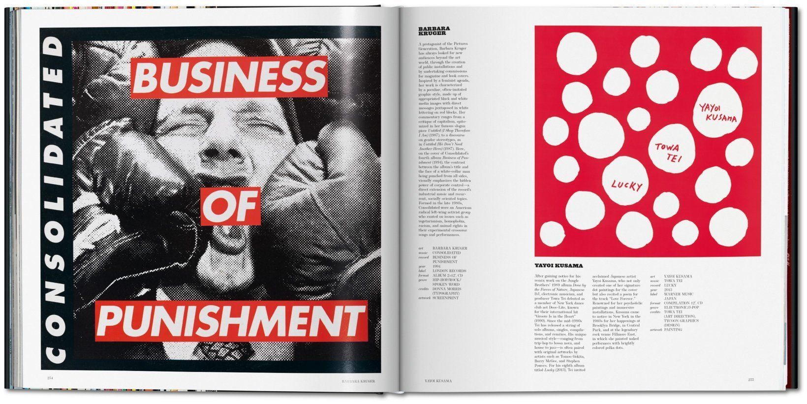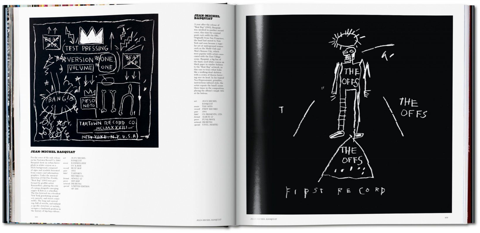 Along the way, we find Jean-Michel Basquiat’s urban hieroglyphs for his own Tartown record label, Banksy’s stenciled graffiti for Blur, Damien Hirst’s symbolic skull for the Hours, and a skewered Salvador Dalí butterfly on Jackie Gleason’s Lonesome Echo. There are insightful analyses and fact sheets alongside the covers listing the artist, performer, album name, label, year of release, and information on the original artwork. Interviews with Tauba Auerbach, Shepard Fairey, Kim Gordon, Christian Marclay, Albert Oehlen, and Raymond Pettibon add personal accounts on the collaborative relationship between artists and musicians.