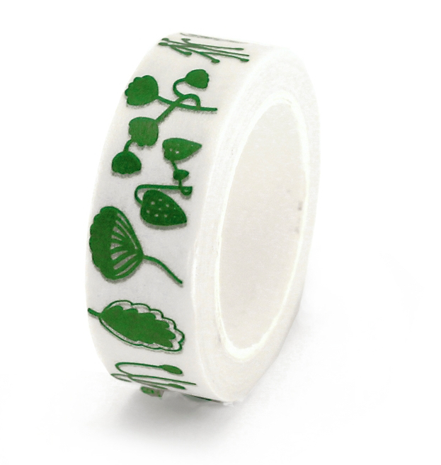 A playful, washi paper tape, 10 metres long, with a green pattern of plants, flowers, leaves and trees. Use it for decoration, gift wrapping, wallpaper and all kinds of DIY fun!