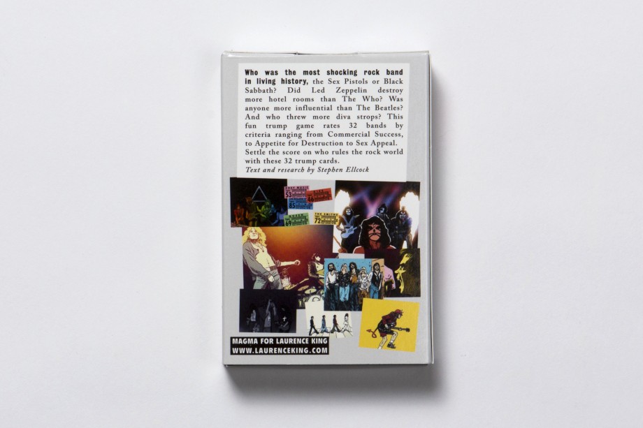 Who was the most shocking rock band in living history, the Sex Pistols or Black Sabbath? Did Led Zeppelin destroy more hotel rooms than The Who? Was anyone more influential than The Beatles? And who threw more diva strops? This fun trump game rates 32 bands by criteria ranging from Commercial Success, to Appetite for Destruction to Sex Appeal.