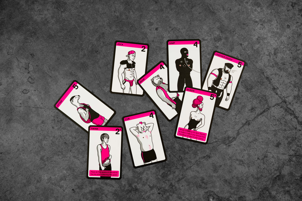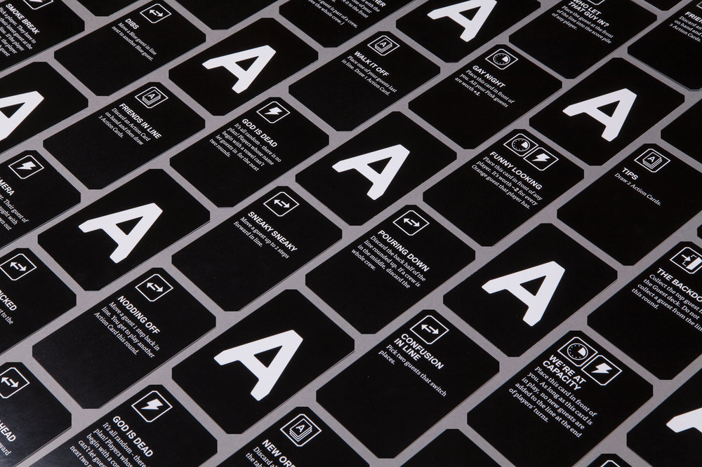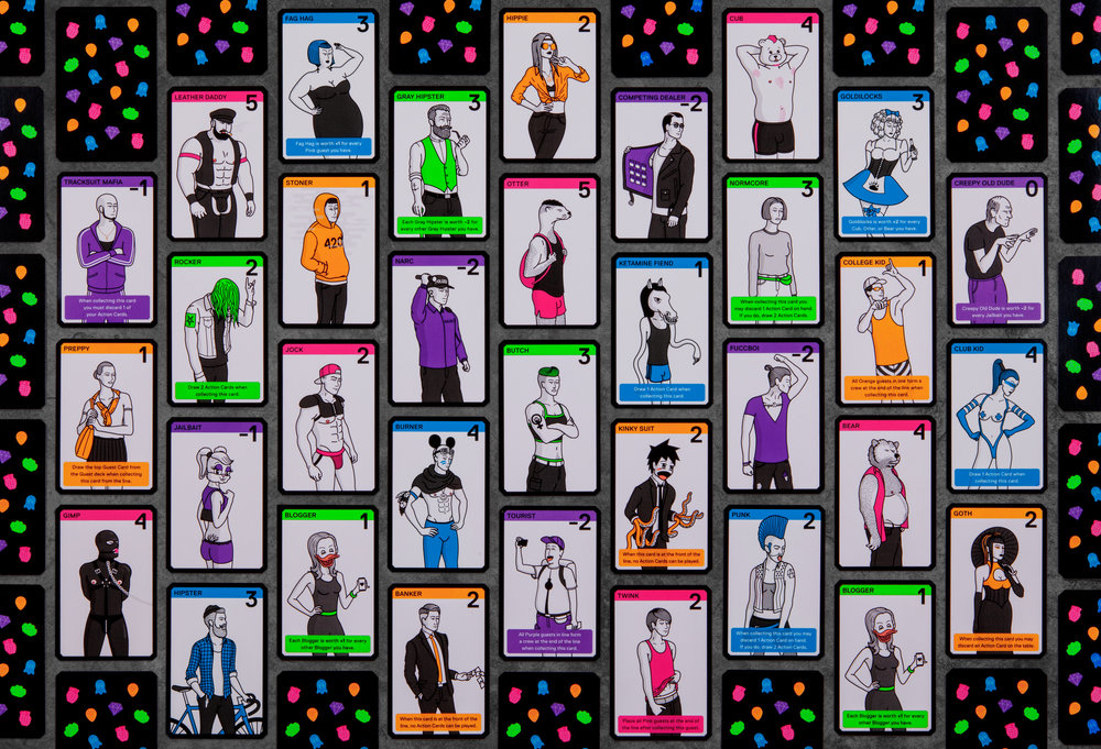 Players take turns as the bouncer, letting the right people in and sabotaging their opponents. Guest cards form a line in front of the Bouncer card, and they score between –2 and +5. Players are given Action Cards which manipulate the line order right before letting guests in, which is what makes the game interesting, dynamic – and fun! The player with the best guests (most points) when the line is empty, wins the game.