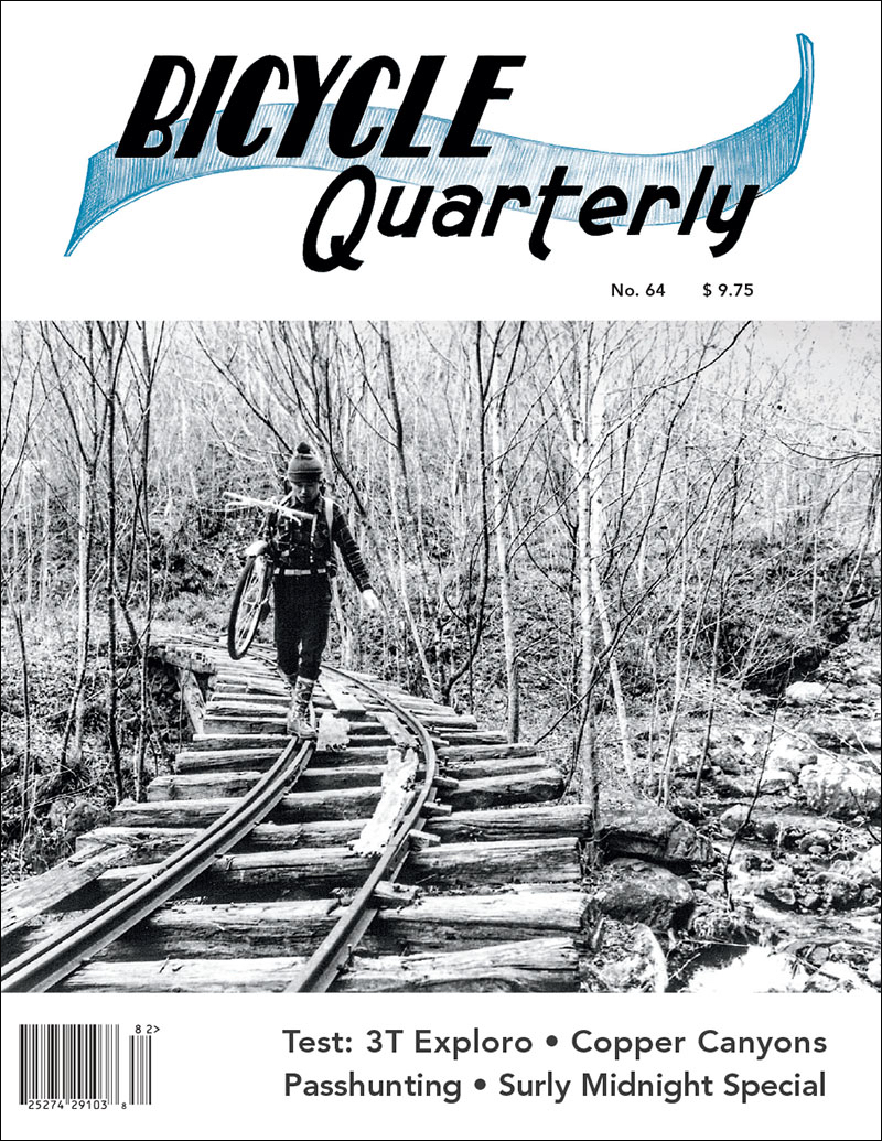 In 2002 Jan Heine decided to follow his passion and start a low budget black and white zine about the culture, history and technology of cycling. 14 years on and Bicycle Quarterly has become a respected voice in the bicycle industry with an almost cult following. Reading a copy will help you appreciate and understand your bicycle even more, but most of all it will make you want to head out for a ride that pushes your boundaries.