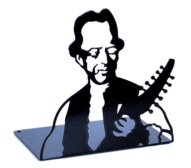 Det är nästan 20 år sedan Jan Landqvist startade projektet »Svenskt litteraturstöd«, vackra bokstöd med porträtt av Sveriges – och några av världens – största kulturprofiler. Landqvist, som står bakom både idé och design, har lång erfarenhet som industri-designer och har varit professor på Konstfack. År 2000 designade han det första bokstödet i stålplåt. Det föreställde August Strindberg. Numera omfattar produktionen ett 50-tal porträtt, av bland andra Virginia Woolf, Stig Dagerman och Astrid Lindgren.