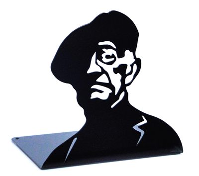 Det är nästan 20 år sedan Jan Landqvist startade projektet »Svenskt litteraturstöd«, vackra bokstöd med porträtt av Sveriges – och några av världens – största kulturprofiler. Landqvist, som står bakom både idé och design, har lång erfarenhet som industri-designer och har varit professor på Konstfack. År 2000 designade han det första bokstödet i stålplåt. Det föreställde August Strindberg. Numera omfattar produktionen ett 50-tal porträtt, av bland andra Virginia Woolf, Stig Dagerman och Astrid Lindgren.