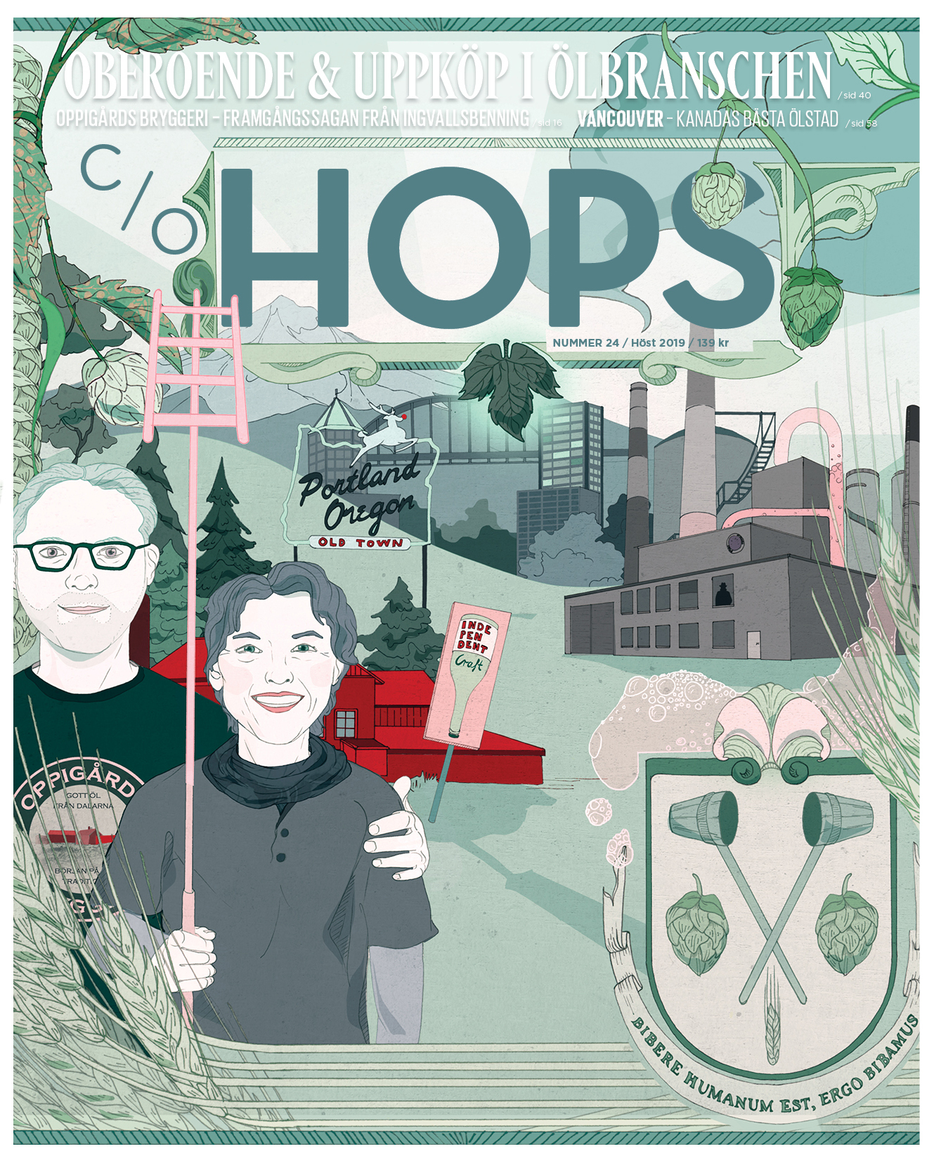 Små bryggerier köps av större aktörer. Detta blir allt mer vanligt i ölvärlden. För ett litet bryggeri kan nytt kapital vara skillnaden mellan att vinna och försvinna, produktionen kan skalas upp och ölen få bättre distribution. Men är det så att man säljer sin själ om man avyttrar en del av sitt företag? I 24:e numret av c/o HOPS ställer vi frågan om ägandet spelar någon roll? Och så reser vi till Ingvallsbenning och besöker Sveriges mest framgångsrika hantverksbryggeri för att prata pengar, motgångar och framtidsplaner med grundaren Oppigårds Björn Falkeström. 25 mil nordväst i andra änden av Dalarna ligger Hundfjället uppe på Sälenfällen. Ett par hundra meter från skidbackarna här ligger Fjällsåsgården där du hittar Sälenfjällens mest intressanta restaurang. Med lokala råvaror och självplockat från sommaren och hösten skapar Malin Flygar och Emma Ramírez matkärlek och matchar med fantastisk dryck. Dessutom reser vid till staden som ständigt hamnar i toppen av världens bästa platser att bosätta sig på. Läget är spektakulärt med bergen som fond och havet som granne. Vancouver är vilt och vackert. Nyligen blev man förstås också utsedd till Kanadas bästa ölstad.