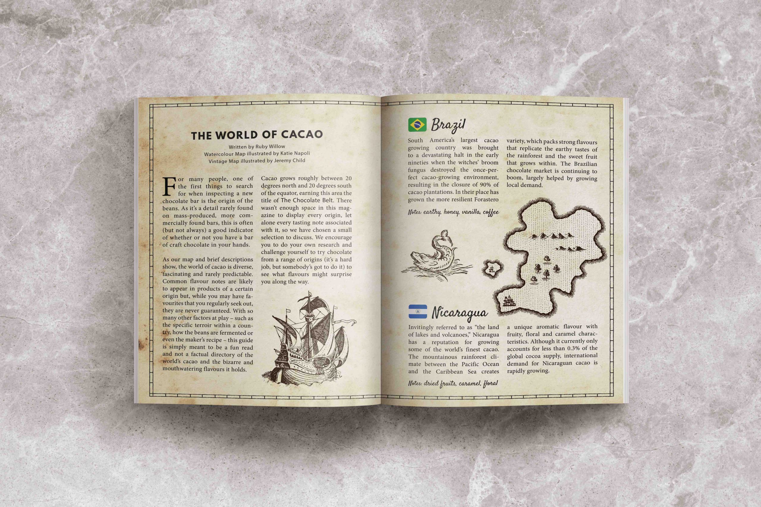 We begin where all chocolate does, at the hands of a farmer along the Cacao belt, exploring their stories from Nicaragua to Thailand. We then follow it all the way to your kitchen cupboard, and everywhere in between. Each issue also includes a feature country, join us as we unwrap the tales of its past and investigate the current and future landscape of the chocolate industry.