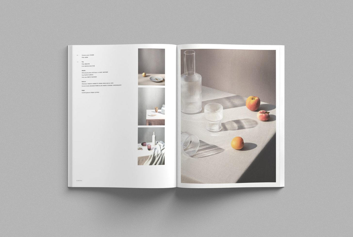 The cover photo of this volume is a continuation of our still life series, reflecting a lighter, brighter tone for the Spring/ Summer season.