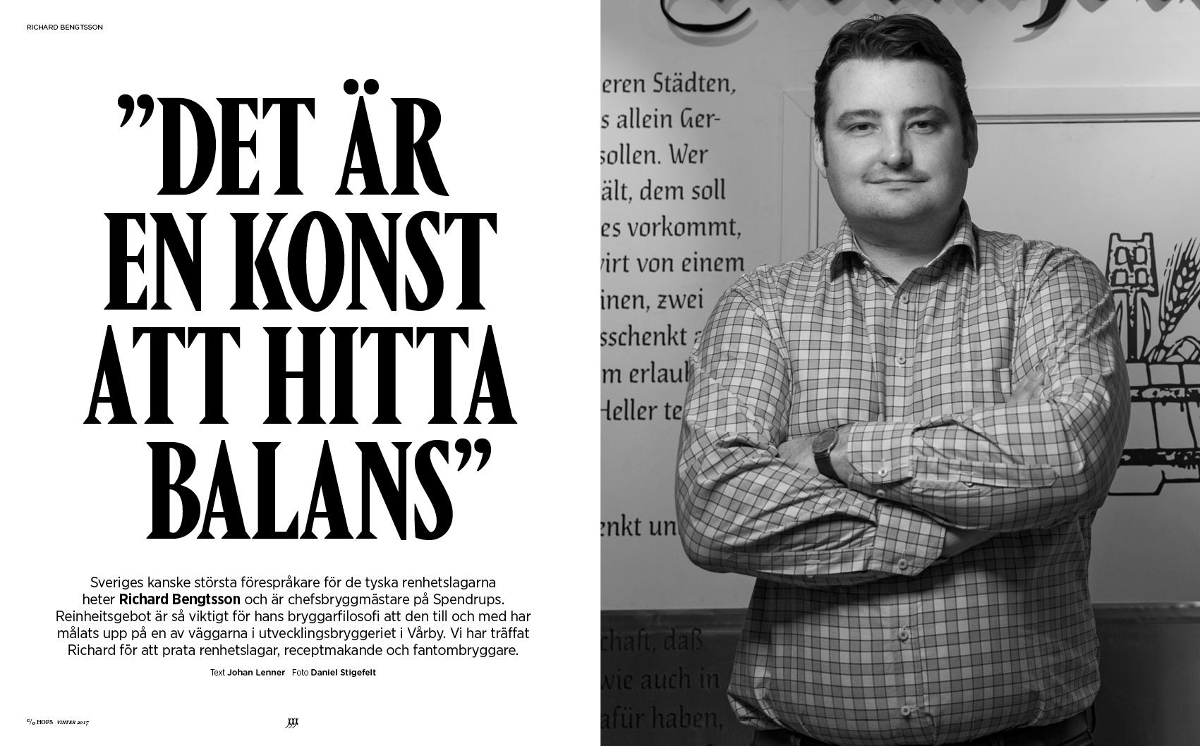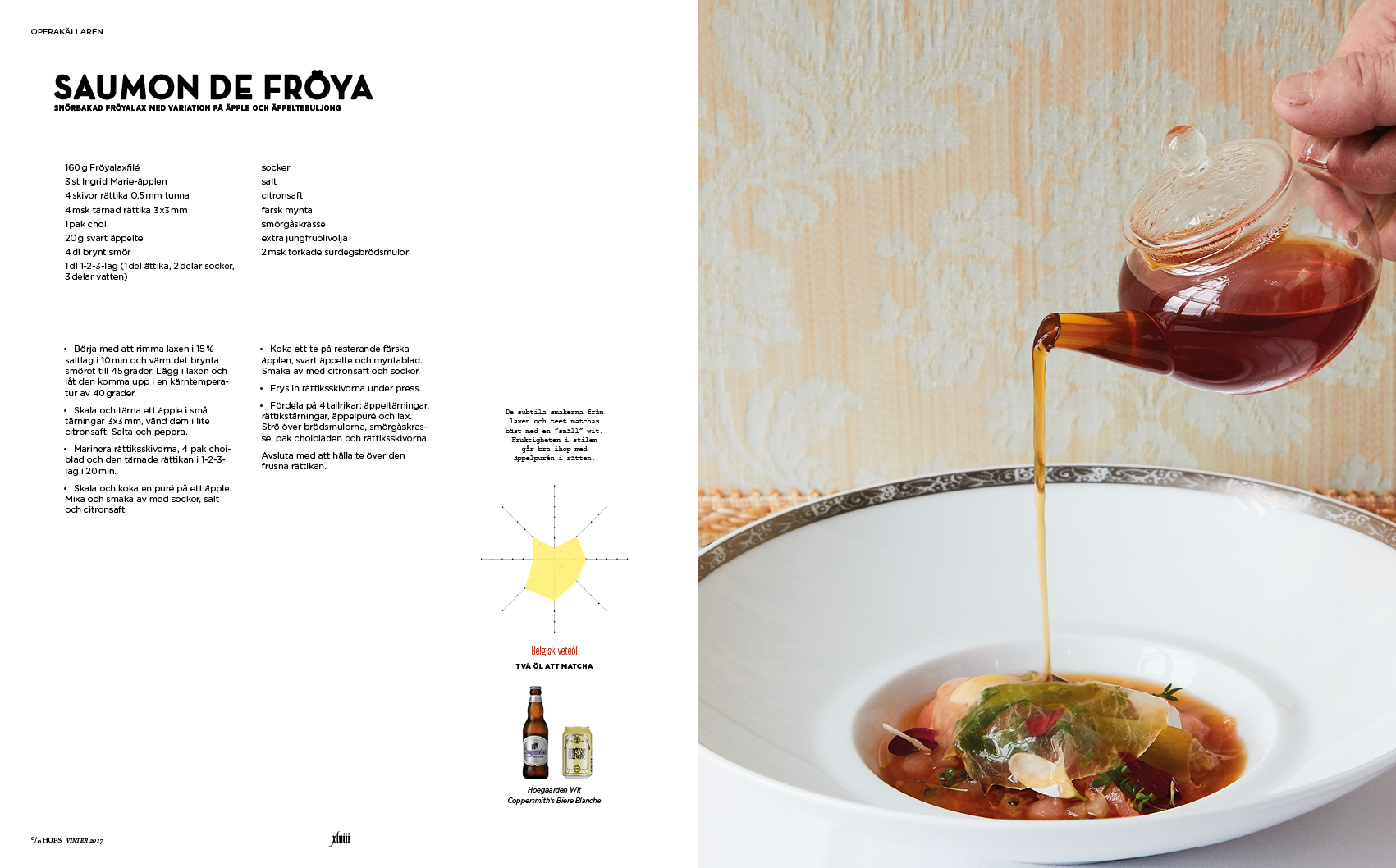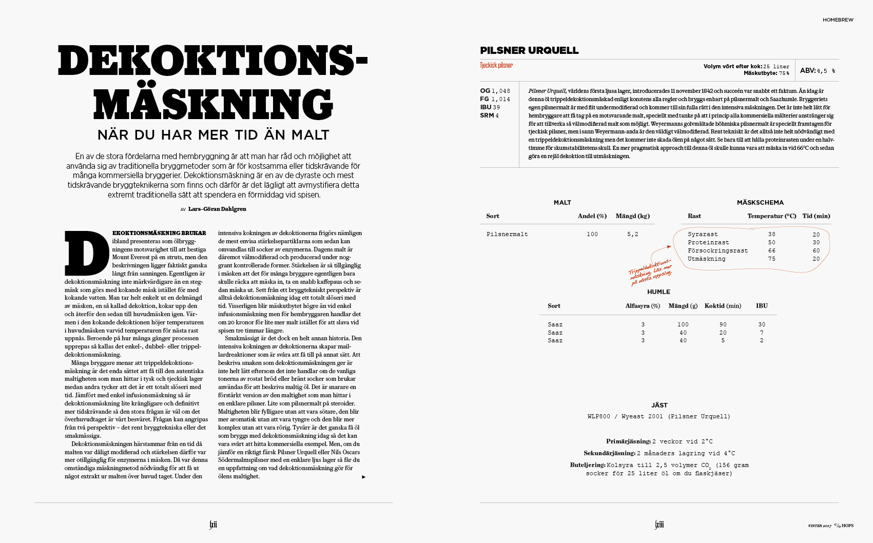 2016 firade den bayerska renhetslagen Reinheitsgebot 500 år. Lagen säger att öl endast får innehålla malt, humle, jäst och vatten. I detta specialnummer har vi från ena hållet tittat närmare på hur renhetslagen står sig i dag, och från andra hållet går vi helt åt andra hållet och fokuserar på öl med frukt, kryddor och animaliska produkter. Vi intervjuar Omnipollos Henok Fentie och Spendrups bryggmästare Richard Bengtsson som båda delar med sig av recept för hembryggaren. Totalt innehåller numret 8 hembryggarrecept. Dessutom matjobb med klassiska Operakällaren och mer utmanande Punk Royale.