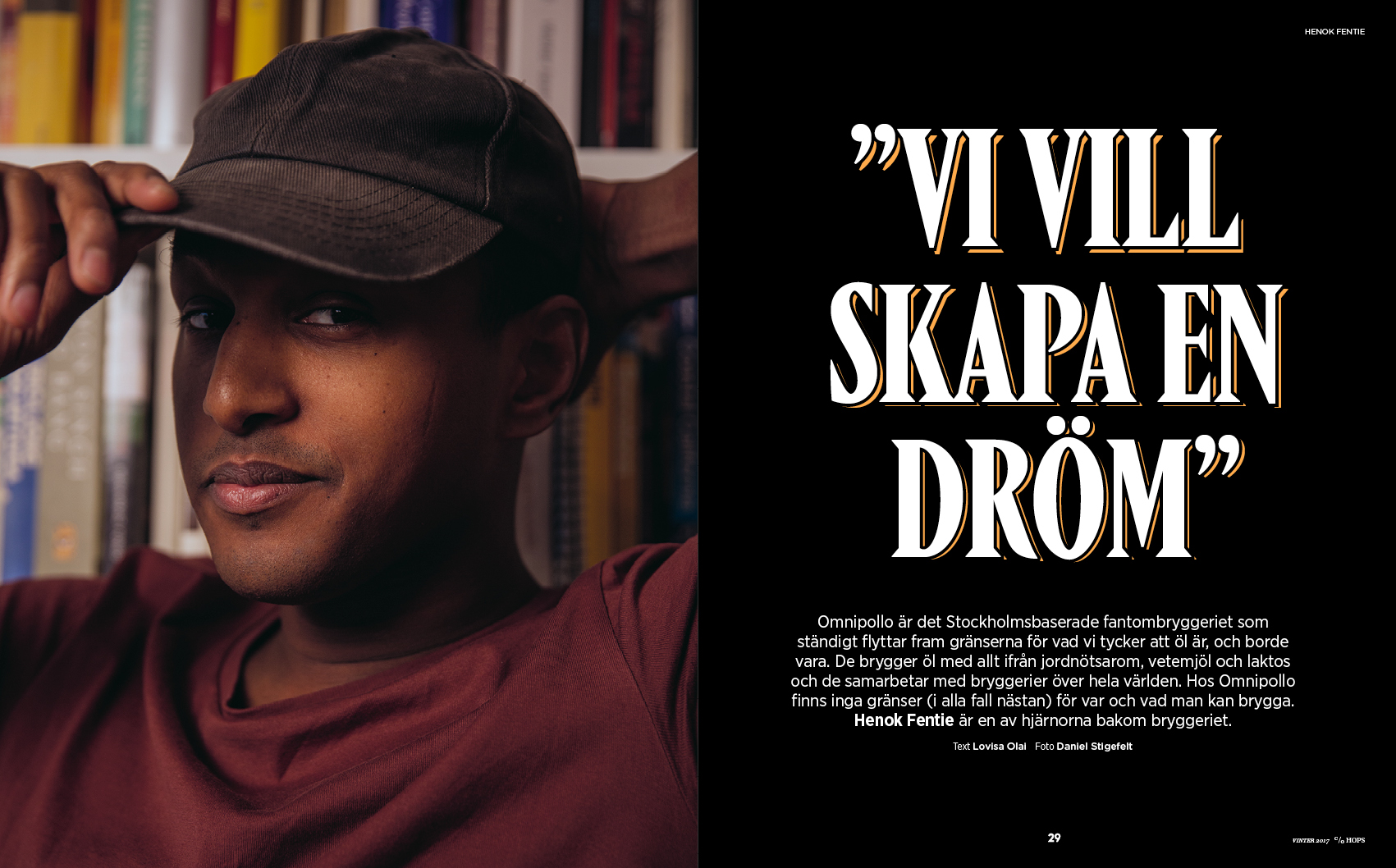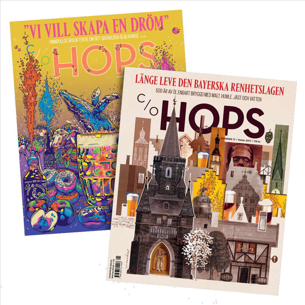 Ett magasin som ska motsvara en riktigt bra hantverksöl, där vi valt papperskvalitéer och innehåll på samma noggranna sätt som humle och malt väljs till en välsmakande hantverksöl. Vi träffar bryggmästare, ölentusiaster och andra spännande människor i ölvärlden. Vi reser runt världen för att upptäcka världens bästa öl. Varje nummer kommer även innehålla ett matjobb skapat unikt för oss tillsammans med en kock helt utifrån ett antal utvalda öl, allt för att skapa en så bra smakupplevelse det går. (Recept ingår). I sista delen av c/o HOPS hittar du ölskolan och D.I.Y. där du lär dig allt om öl, tillbehören och där våra experter guidar dig att göra lika god öl som du köper.