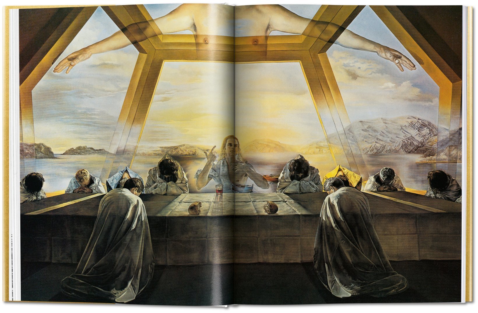 Bursting with imagery, the book features more than 140 illustrations by Dalí. Many of these areappropriated artworks, including various classical nudes, all of them reconstructed with suitably Surrealist, provocative touches, like Jean-François Millet’s The Angelus, one of Dalí’s favorite points of reference over the decades. Dalí also included what is now considered one of the greatest works from his late “Nuclear Mystic” phase, The Sacrament of the Last Supper (1955), which sets the iconic biblical scene in a translucent dodecahedron-shaped space before a Catalonian coastal landscape. Dalí was by this stage a devout Catholic, simultaneously captivated by science, optical illusion, and the atomic age.