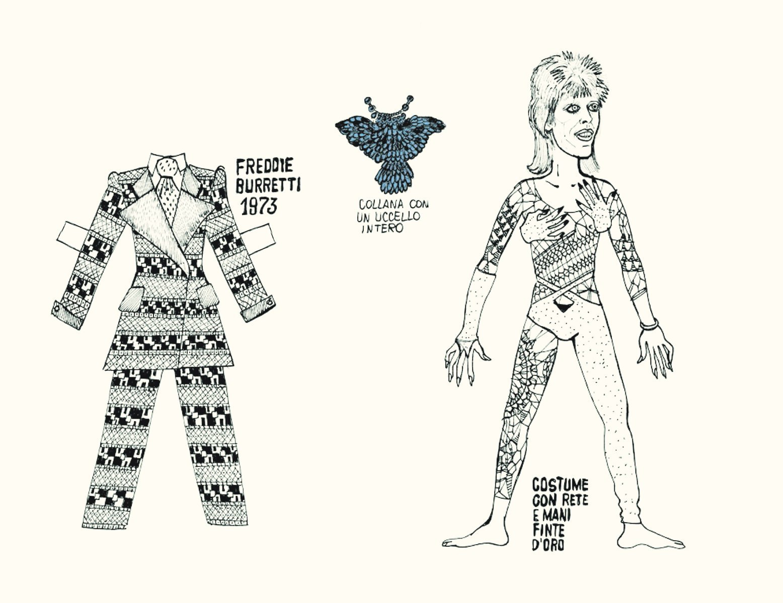 For the duration of his career, David Bowie kept away from scripts imposed by others, choosing, for better or for worse, to write his own story of his life. From the Sixties until his death in 2016, he created a series of fictional figures, imagining them in full, designing, and translating them on stage, giving each its unique identity. The clothes, faces, and music of those years become subjects to colour in, paper-dolls to dress, and board games to assemble in this, the ultimate collector’s activity-book: to be approached with glue, scissors and colouring pencils, dedicated to all the fans of the legendary superstar.