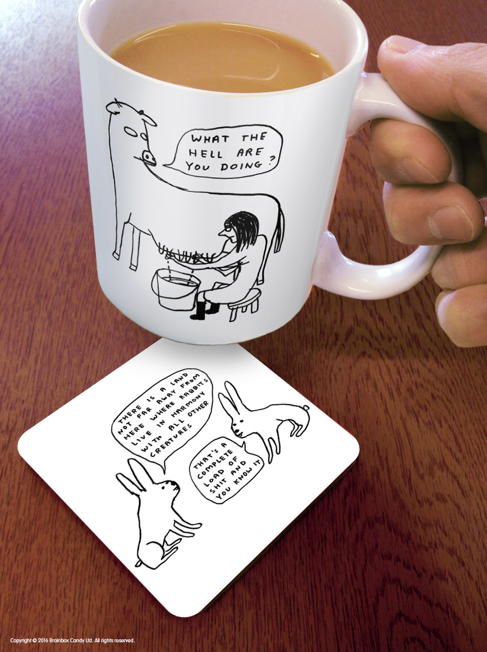 Spread the comic joy of David Shrigley around the house with these illustrated coasters. Available in different designs, they are perfect as a set or mixed and matched to create a unique collection. Each square coaster is made from melamine with a cork backing, making it sturdy and easy to wipe clean.