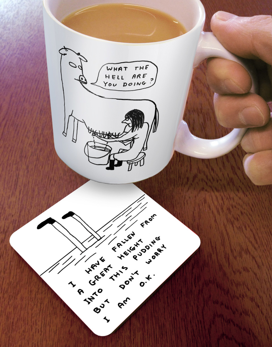 Spread the comic joy of David Shrigley around the house with these illustrated coasters. Available in different designs, they are perfect as a set or mixed and matched to create a unique collection. Each square coaster is made from melamine with a cork backing, making it sturdy and easy to wipe clean.