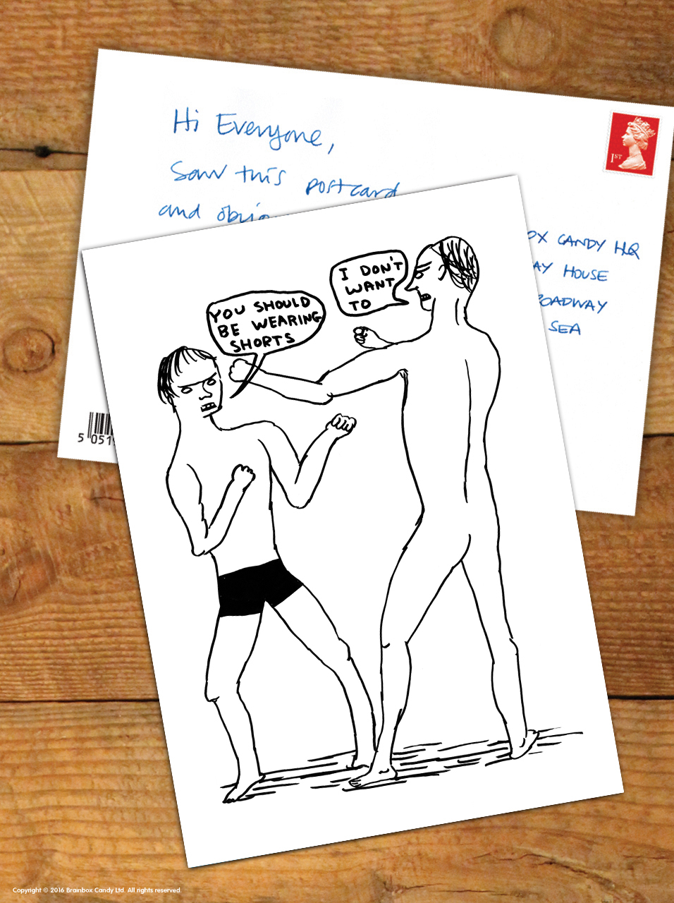 David Shrigley Postcard – Wearing Shorts