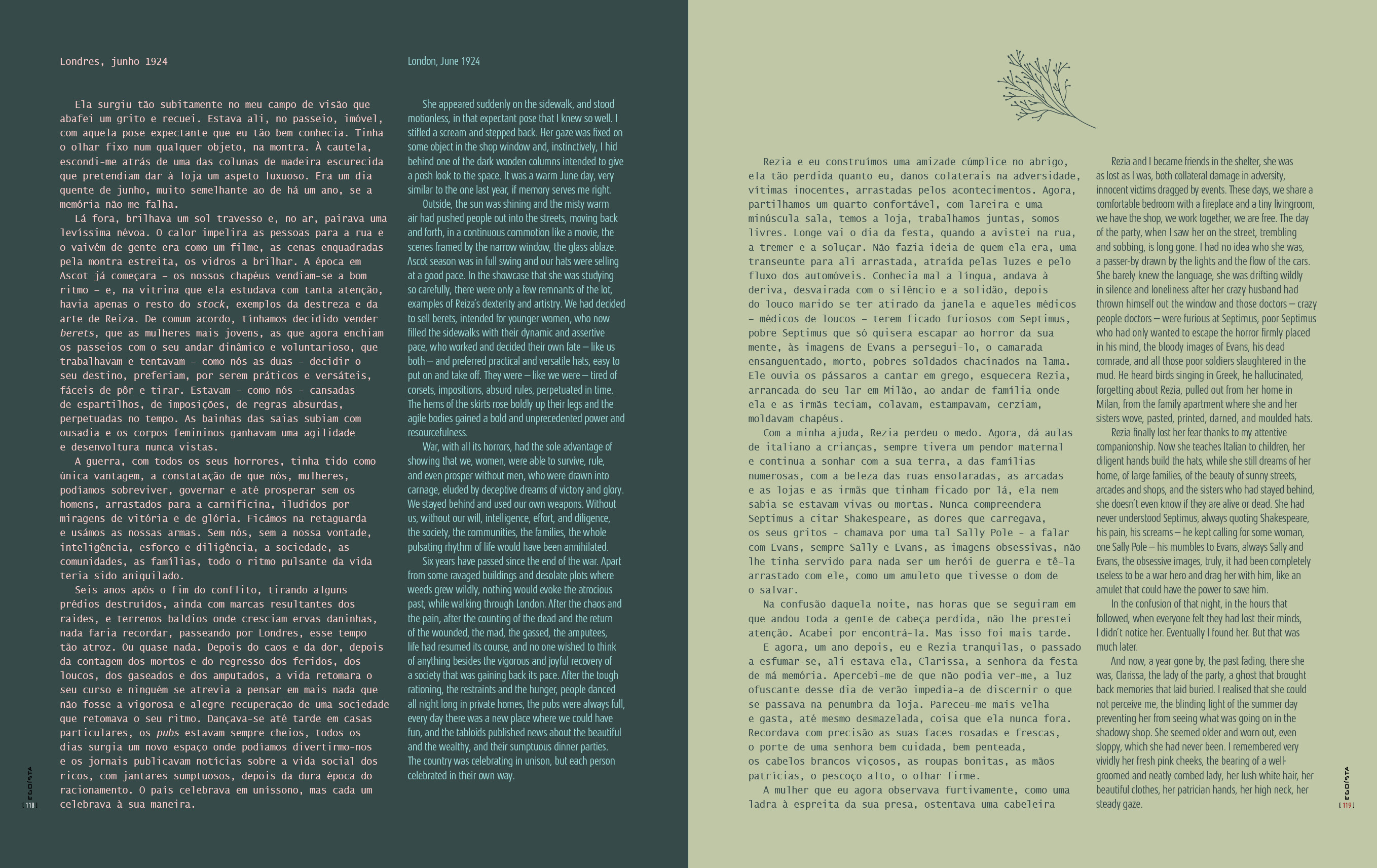 Finally, Helena Vasconcelos pays tribute to Virginia Woolf and recreates an episode from the book Mrs. Dalloway.