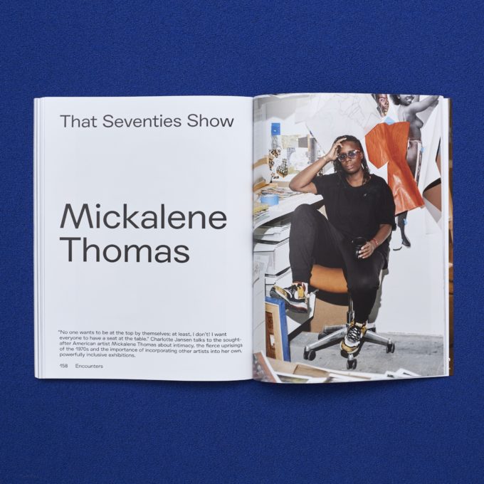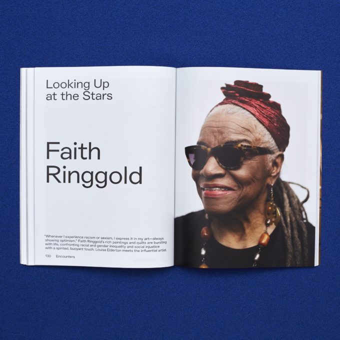 History informs and foregrounds numerous artists in our Encounters: Mickalene Thomas talks about the political punch of the 1970s, Faith Ringgold tells us how she turns past trauma into optimism, and Danh Vo explains how he throws heavily symbolic cultural icons out-of-sync. Also, Carrie Mae Weems shares her hopes for a more positive future and Sol Calero discusses the cultural responsibility of decoration.