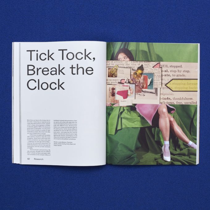 In this issue we speak with artists who reverse, recycle or stop the clock altogether. Some look to the most emotional connection we have with time, relating to our own age and mortality, and share both the personal experience of enduring beyond a doctor-decreed life expectancy and the private moments of midlife. We also question how history changes and reshapes itself as the years go by, and highlight the cyclical nature of social and cultural norms.