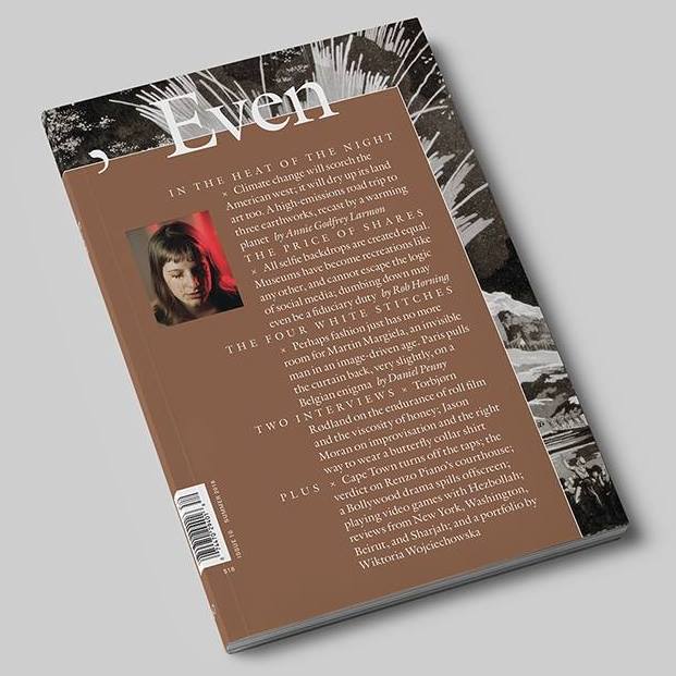 Even is published three times a year, in a medium-sized format and on rather handsome paper, by a team of sleep-deprived New Yorkers: Jason Farago is the editor, Rebecca Ann Siegel is the publisher, and Common Name is on design.