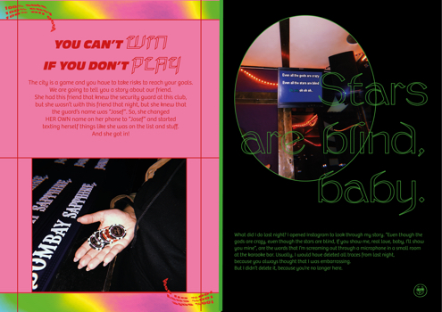 We think that spending so much time outside gives you a sense of ownership. This city belongs to me, you and everyone else. We don’t think we´ll never get tired of staying out late, risky decisions, new ideas, and dangerous behavior. You can’t control the future and you definitely can’t control death. So, just enjoy the ride.
