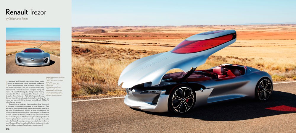Iconic winglets adorn models from the 50s. Automobiles of the 70s appear to be works of science fiction rather than modes of transportation. Classic interpretations and vintage prototypes that hinted at the future of yesteryear. Every decade has it own ideas of the future. The timeline of concept cars is narrated through an alluring pairing of project images and stories from inside studio walls. Designers discuss the catalysts behind their creations from the first scribble upon a blank page to a 3D model to the roadways.