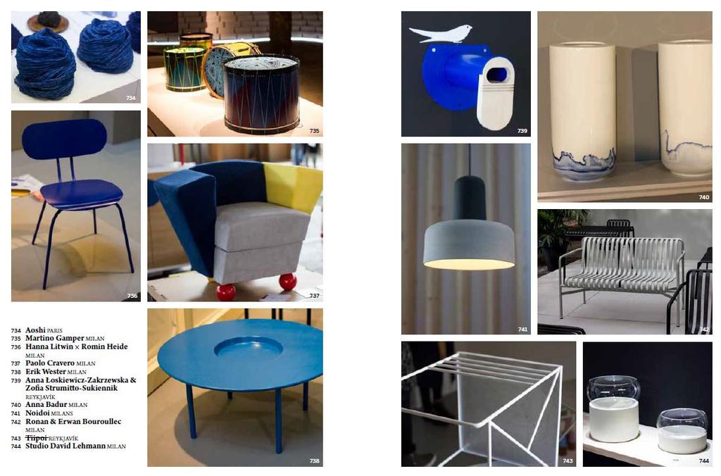 – As always the magazine opens with Kaleidoscope, everything editor Katie Treggiden saw across the four fairs, arranged in colour order. Every object is allocated a Kaleidoscope code which appears wherever that objects appears throughout the magazine, and finally links to a designer directory at the back of the magazine.