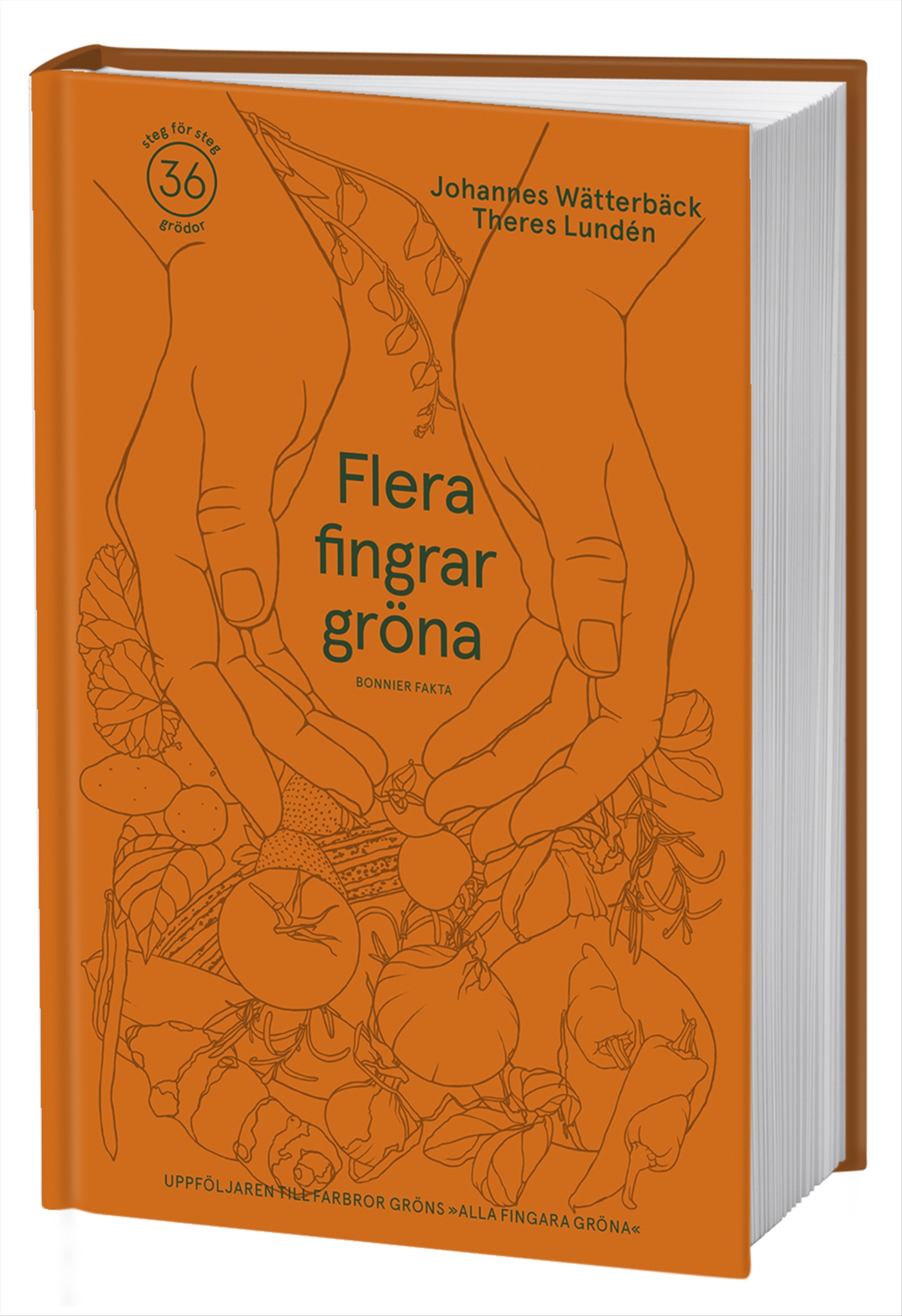 Här finns även tips om fröer, växtsorter, jord- och gödseltyper. Och inte minst får du läsa om hur du planerar ditt odlande för att kunna skörda året om. Även erfarna odlare har mycket här att hämta i form av hjälp med problemlösning och allehanda tips för att förbättra och öka skördarna. Flera fingrar gröna är är en uppföljare till Alla fingrar gröna, som kom ut 2015. Upplägget i denna nya bok är i princip detsamma som i den förra, men med andra spännande grödor, som till exempel sötpotatis, rotpersilja, melon, kailaan och ramslök.