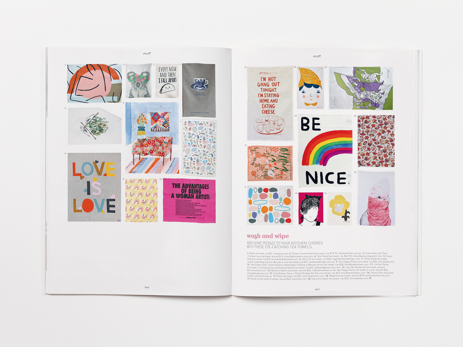 Also on the menu: an introduction to the fine folks who’ll be judging your Good Stuff entries this year (it’s back!); artists doing way more with paper than making basic planes and cranes; a little look at what giggling means, biologically speaking; and some handy-dandy tips for sending insomnia on its merry way. There’s a group of rebellious Kiwi seniors who are laughing death square in the face; sweet duds to wear when you’re off to the seaside; and a club that’s all about exploring big feelings. Plus, snazzy tea towels – and lots of ‘em. Add to that all the usual craft, design, music, fashion, real-life reads and beaut photography, and you’ll be all set for summer holiday reading material. Enjoy!