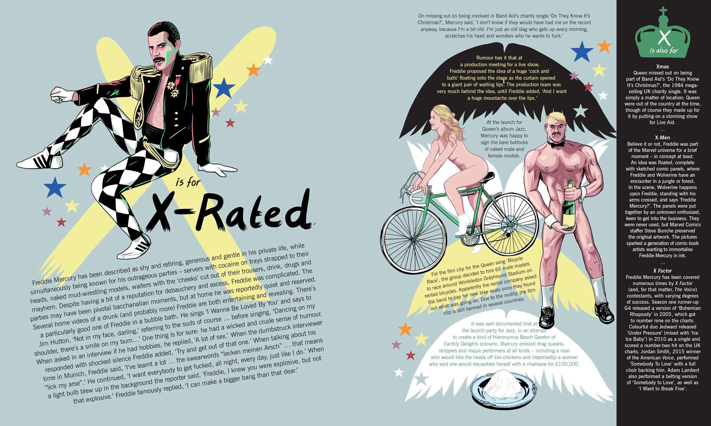 Celebrate Freddie Mercury in the next iteration of Steve Wide’s Icons A to Z series. Follow Freddie, born Farrokh Bulsara, as he harnesses hyperdontia to develop an unparalleled vocal range. See Smile, Freddie’s first complete band, graduate to become the global phenomenon Queen. Dissect lyrical oddities like “radio gaga” and “Scaramouch,” and revel in the glorious chevron moustache Freddie grew in 1980… All these stories are told through the stunning comic stylings of Paul Borchers.