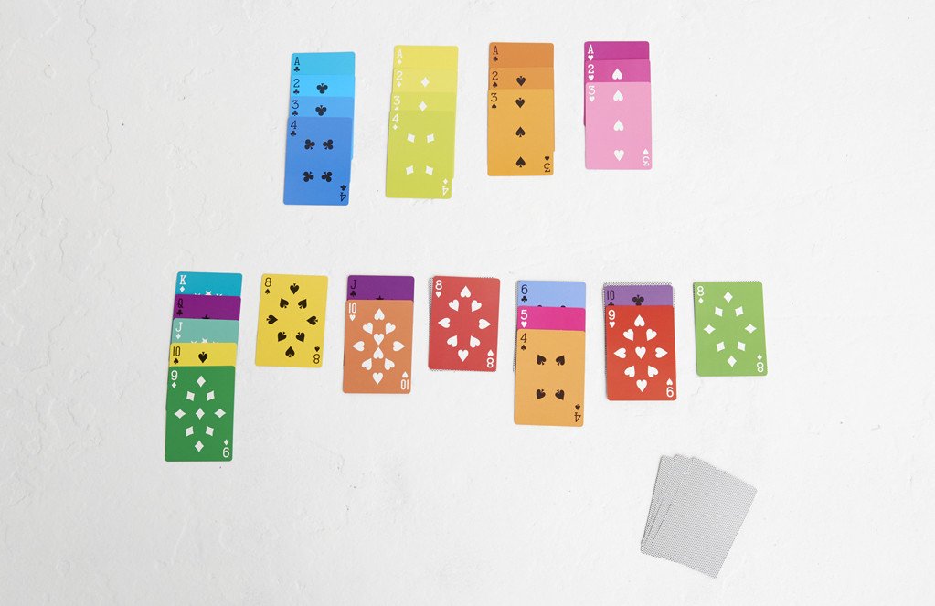 Fredericks & Mae, a Brooklyn-based design duo known for their beautiful hand-crafted products, bring their love of games and color to this unique set of playing cards. Housed in a sturdy, keepsake box with foil stamping, the one-of-a-kind cards feature a full spectrum of colors, resulting in vibrant game play and artistic display. A perfect gift for aspiring card sharks and design lovers, the package also includes a mini booklet with history and lore, game instruction, and information about the artists.