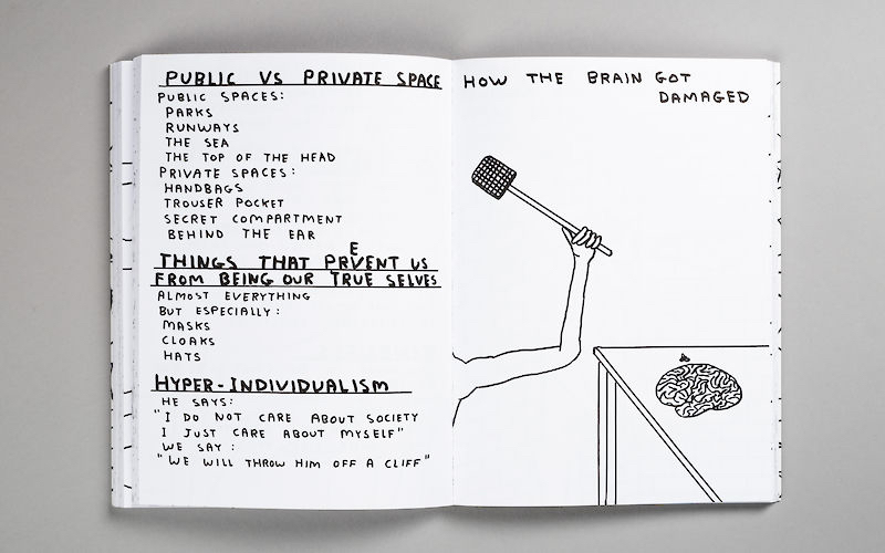 “Concerned about the breakdown of society? Fear not: David Shrigley has a plan … Shrigley points politely towards the ridiculous and arbitrary nature of the societal strictures by which we all abide and from which he seems so blissfully free”