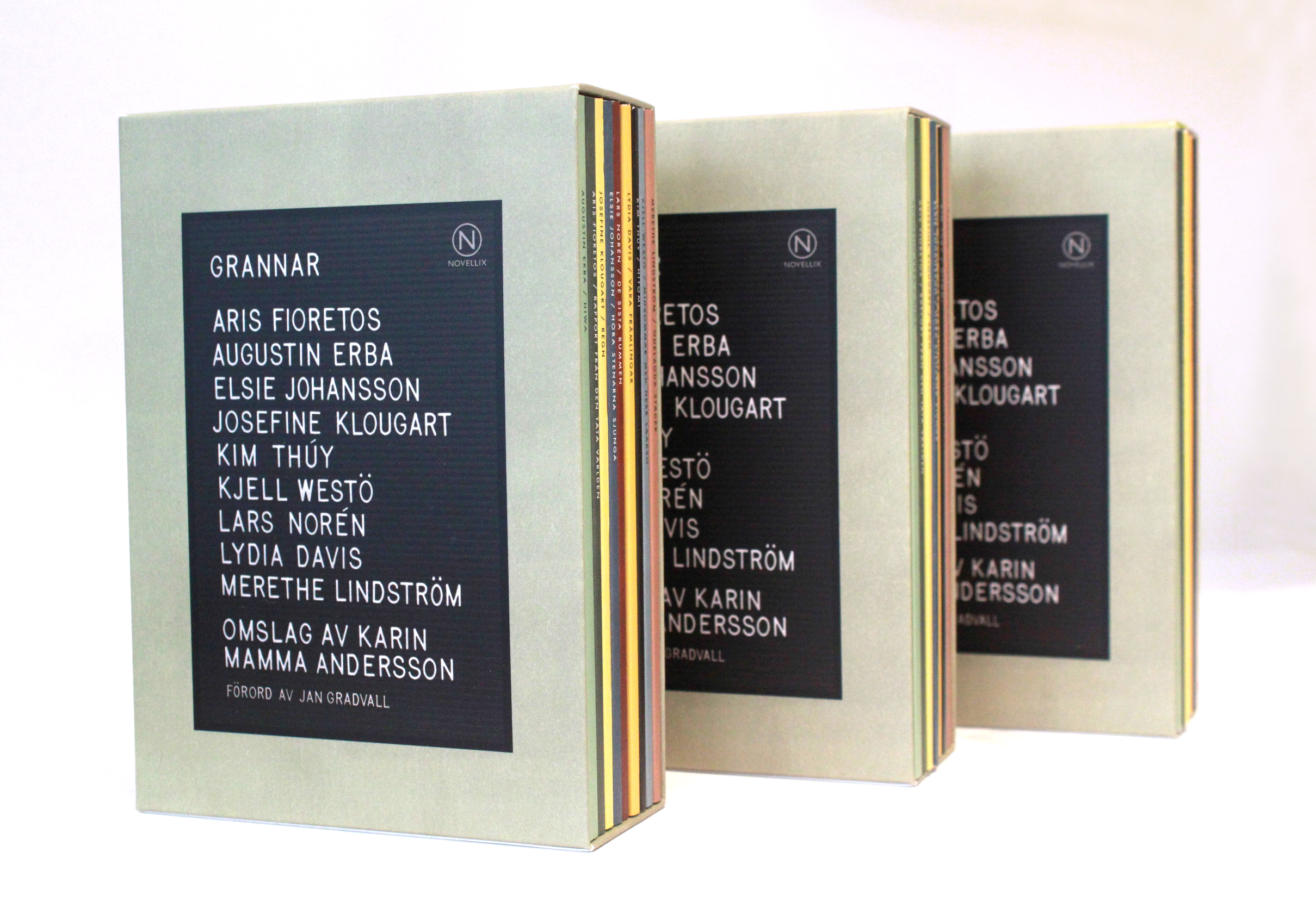 I Novellix Grannar har nio författare fyra svenska och fem internationella fritt tolkat detta tema. Resultatet är nio noveller med nio unika omslag skapade av konstnären Karin Mamma Andersson. Böckerna är samlade i en fin presentbox och rymmer berättelser om samhörighet och främlingskap, där erfarenheter både kan föra oss samman och skilja oss åt. Alla är vi grannar med varandras liv.