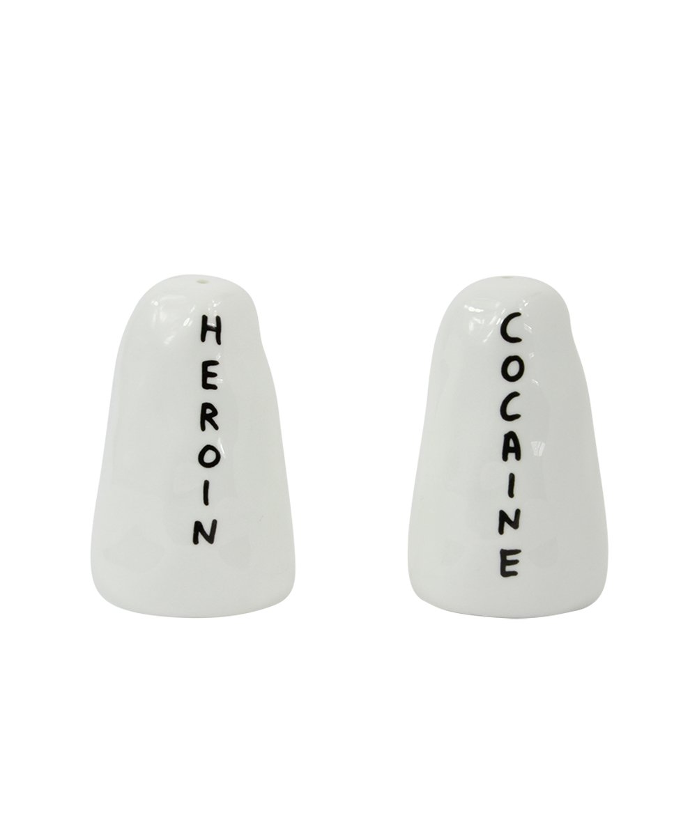 Heroin and Cocaine Salt & Pepper shaker by David Shrigley