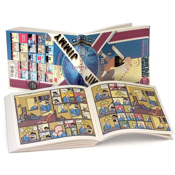 A major comics achievement! Chris Ware’s elliptical Jimmy Corrigan story was serialized over the course of several years in many syndicated newspaper markets. The story, while brilliant and certainly beautiful to look at, was a little hard to follow in weekly installments. Now it’s been collected in this handsome hardcover book and, taken as a whole, seems even more amazing than we initially estimated. A multi-generational family story that focuses on the simple, sheltered Jimmy Corrigan — and also functions as a neat little history of Chicago — this book can be read from a few different perspectives and like many great books, develops different meanings each time you read it. If you’ve ever been dubious about the notion of comics as literature, this one should change your mind — and it’s very funny and moving stuff!