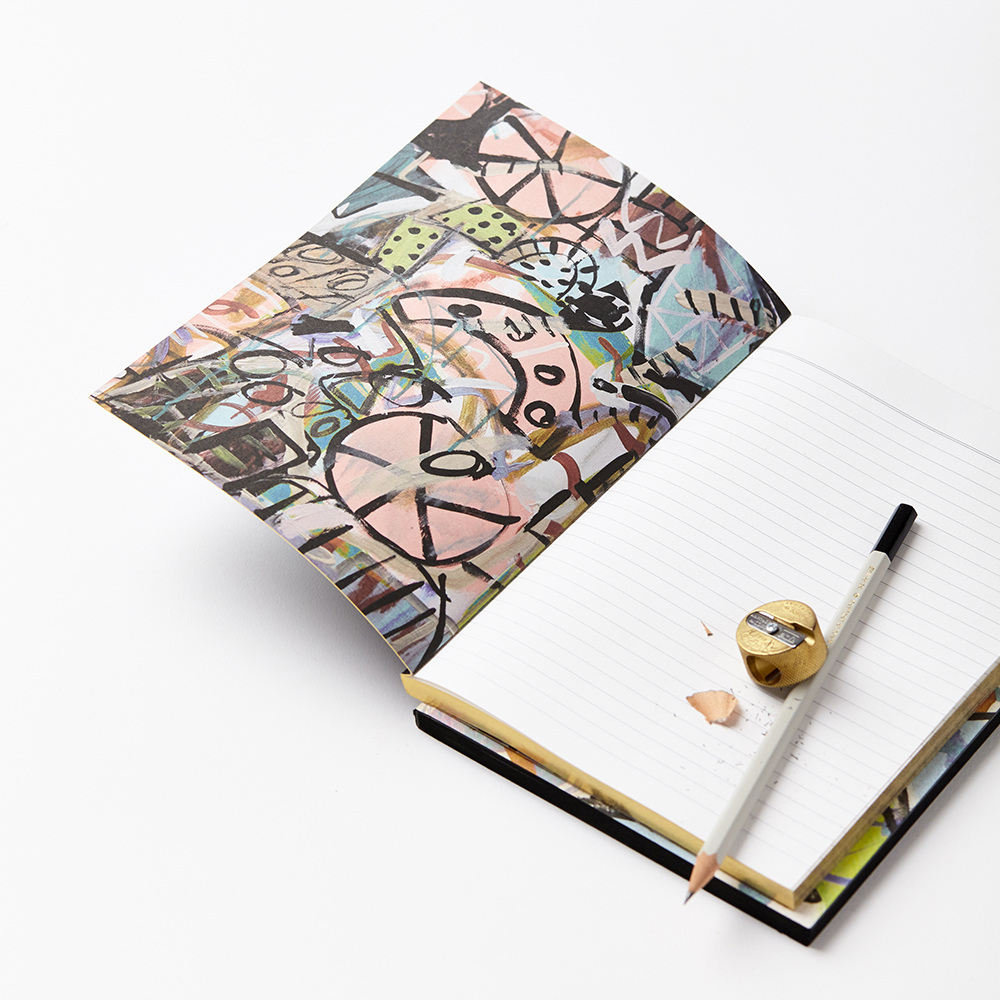 Zig zag notebook with gold foiled ‘Notebook’ on the front cover. Each notebook contains 32 faintly lined 120gsm paper pages. 180mm x255mm in size. Proudly made in England.