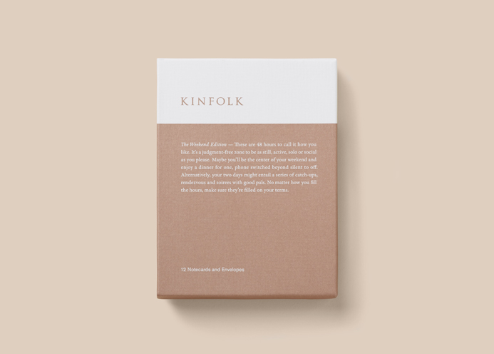 This biannual notecard collection is a practical extension of Kinfolk’s focus on cultivating community and nurturing friendships. Each edition of twelve notecards and envelopes showcases some of the most popular work from the talented international photographers featured in the magazine. In the same way that Kinfolk explores a theme within each issue, each notecard edition conveys a new concept through a fresh set of photographs. The first in the collection—The Weekend Edition—channels the joy of our days off. Packaged in a minimalist art board box, each edition will include twelve A2 folding cards with blank interiors, full-color cover photography and twelve blank envelopes.