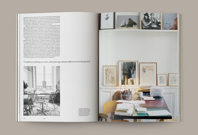 Call Me By Your Name author André Aciman discusses the value—and values—inherent in literature; we meet creative director Frank Durand, who successfully revived the once-defunct Holiday magazine; and we learn the ancient art of calligraphy with Parisian artisan Nicolas Ouchenir.