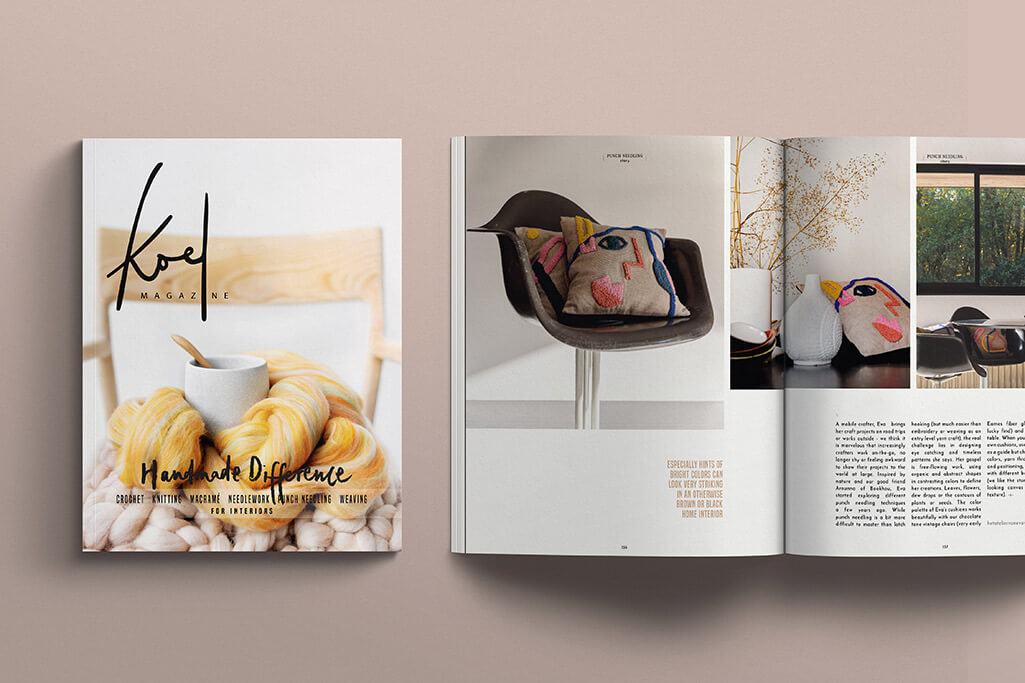 KOEL Magazine celebrates yarn crafting for modern interiors. KOEL brings everything there’s to know about crochet, knitting, weaving, latch hooking, punch needling, needlework and macramé – new tools, hand dyed yarns, home decor trends, supplies and patterns.