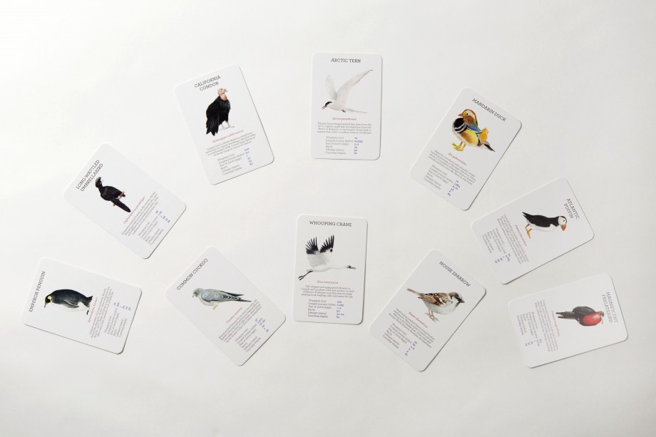 This avian trump game rates 32 birds by criteria including Clutch Size, Rarity and Courtship Display. Find out who’s first in the pecking order with these beautifully illustrated trump cards.
