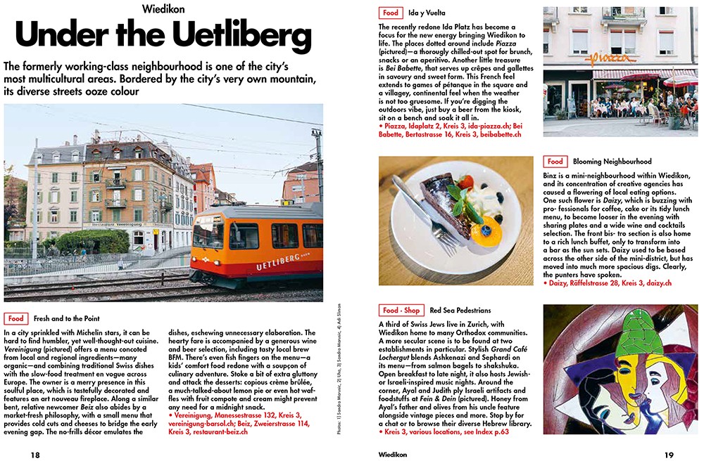 Zurich offers many treasures beyond its bank vaults. The cultural heritage of Dada’s birthplace remains vibrant today in the reformed industrial spaces that host its freshest galleries. Post-industrial restaurants are joining a dining scene that reflects a long history as a cultural crossroad. And nightclubs with no official closing time vie alongside classy cocktail bars and raucous havens drawing in half the Swiss population every weekend.