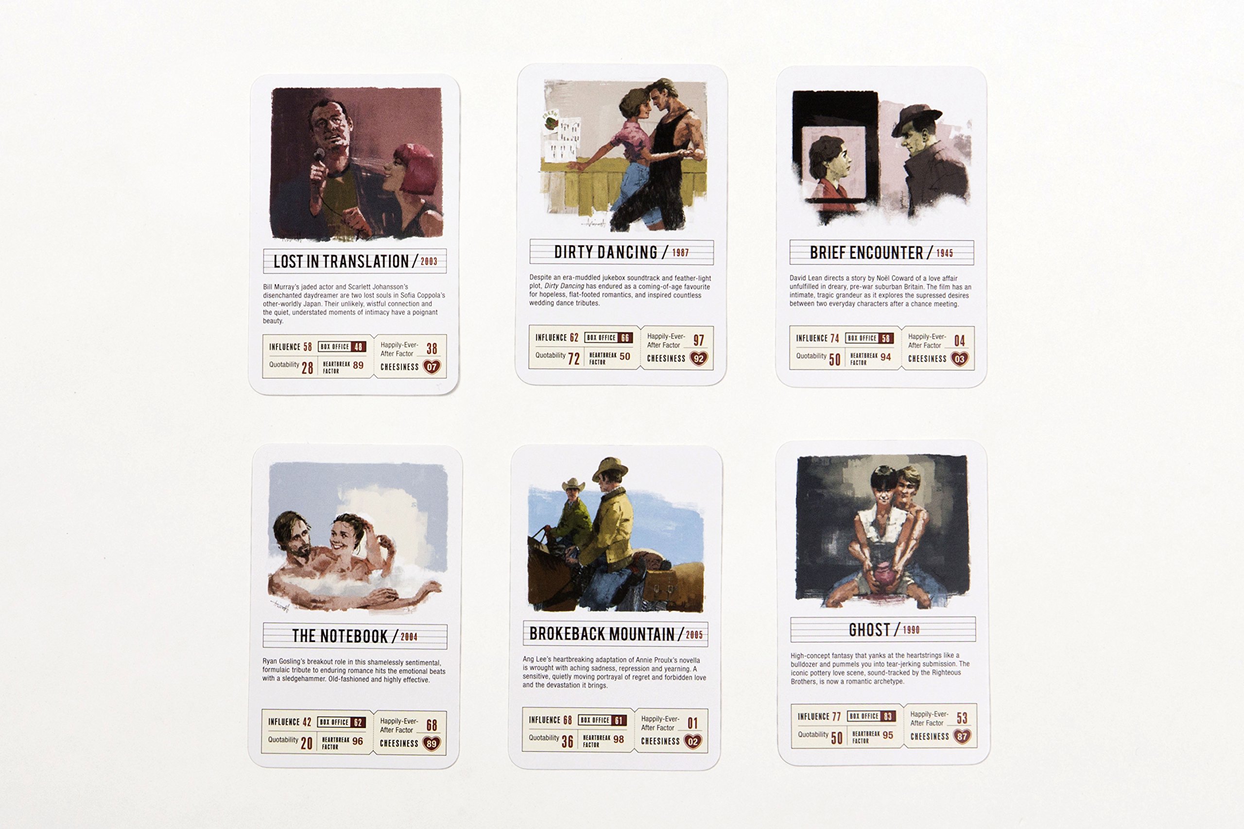 Which movie is the most heartbreaking, Titanic or The Notebook? Is Dirty Dancing cheesier than Love Story? And which film is the most quotable, The Princess Bride or Casablanca? Rediscover your favourite romantic movies and pit them against each other with these 32 trump cards.