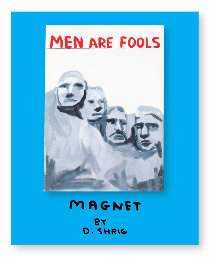 Say what you think with these new David Shrigley magnets. Packaged on coloured card for easy display. Packaging size 10.5cm x 13cm. Magnet size 9cm x 6.5cm