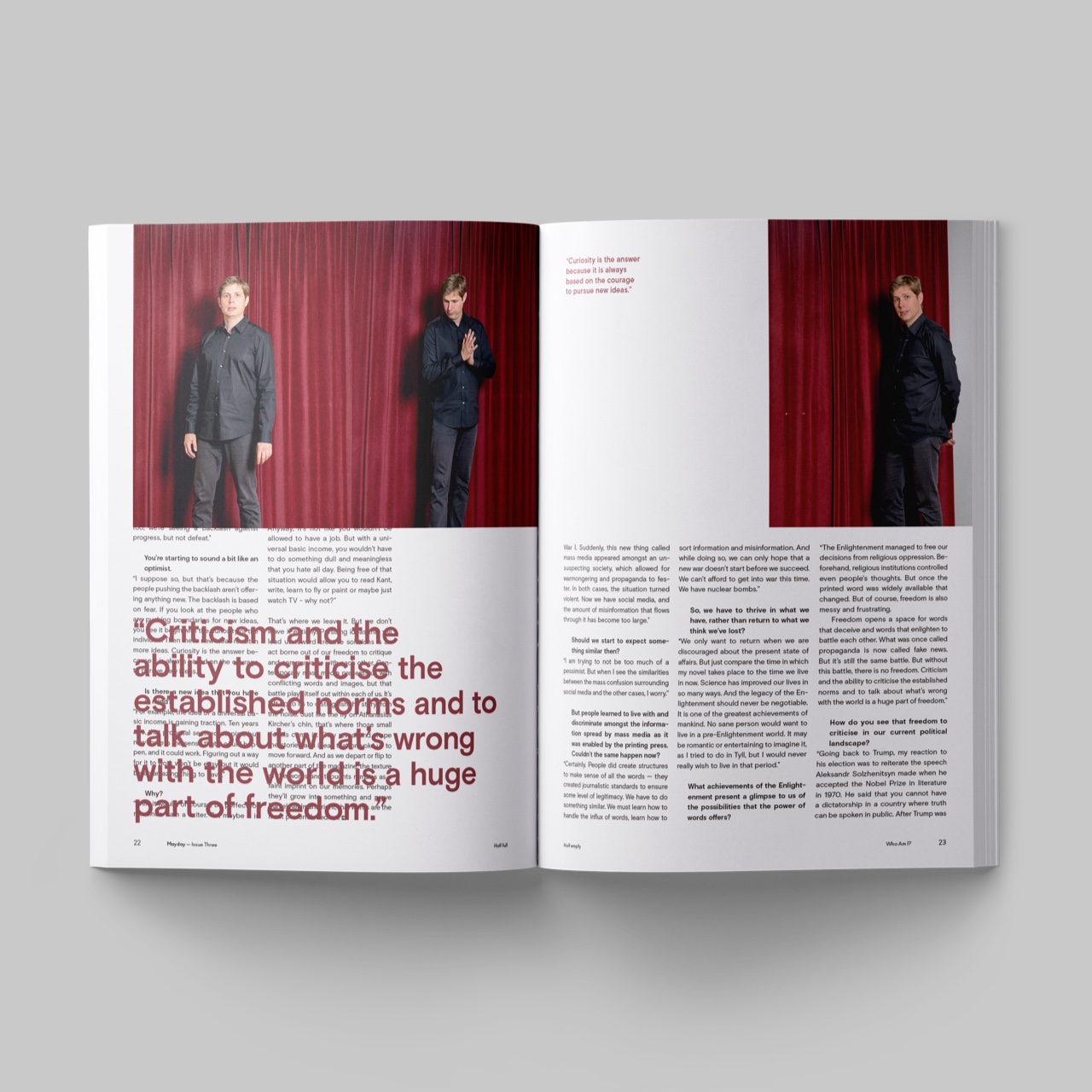 Mayday is an independent magazine about the erratic realities facing people, society, business and culture. It’s the world’s new medium created in a rare combination of clever and beautiful, serious and playful, and forward-thinking yet respectful for the great accomplishments of humanity. It’s a work of art for all senses. It’s original. It’s Mayday.