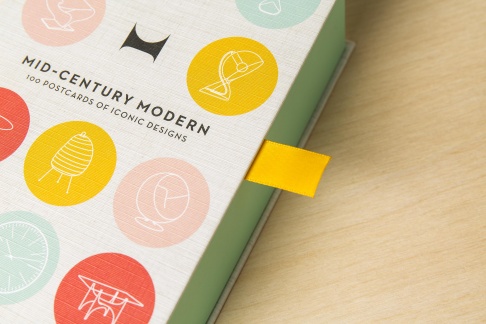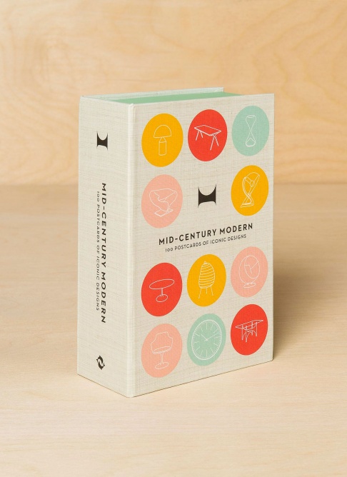 One hundred postcards depict the best mid-century modern design in the same playful, vintage graphics, with key information about the product on the reverse.