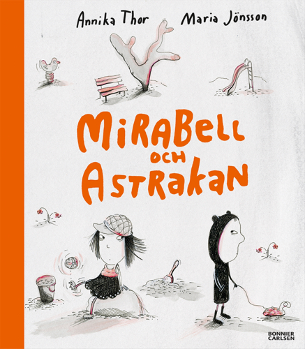 Med blinkningar till Becketts “I väntan på Godot” byggs en berättelse om hur man för att möta andra först måste möta sig själv. Astrakan och Mirabell kivar om en gunga, men samtidigt får läsaren ta del av en helt annan berättelse som finns under ytan. Vem är stark och vem är svag? Allt är kanske inte alltid som det verkar vid första anblicken? Annika Thors text är svindlande självklar och samtidigt komplex. Stämningen ackompanjeras och förtätas av Maria Jönssons stilrena och uttrycksfulla bilder. Tillsammans har denna mästarduo tidigare skapat bilderboken “Flickan från långt borta” som tilldelades Elsa Beskow-plaketten för årets bästa bilderbok 2015.