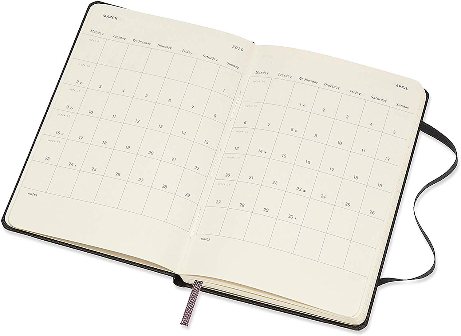 The Moleskine Weekly Notebook is dated from January to December. Formatted to show the week’s appointments on the left and a ruled page for notes and ideas on the right, it is a handy and versatile planner that incorporates the freedom of a notebook.