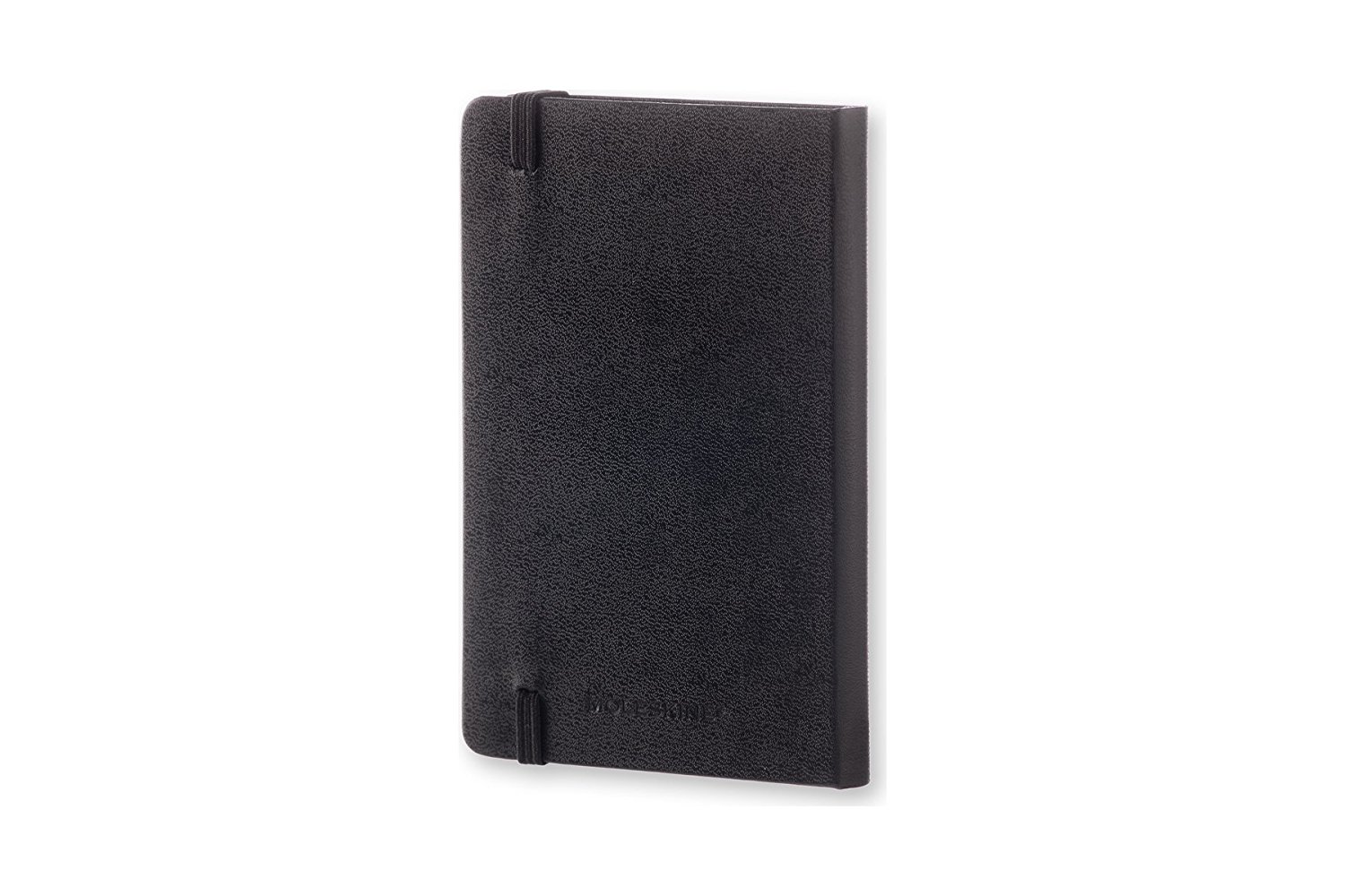 The Moleskine Pocket Dotted Notebook now comes in black. The hard cover is bound in cardboard with rounded corners and a black elastic enclosure and bookmark. The 192 dotted pages are made from acid-free, ivory coloured paper. The notebook includes a black expandable inner pocket for loose notes and cards.