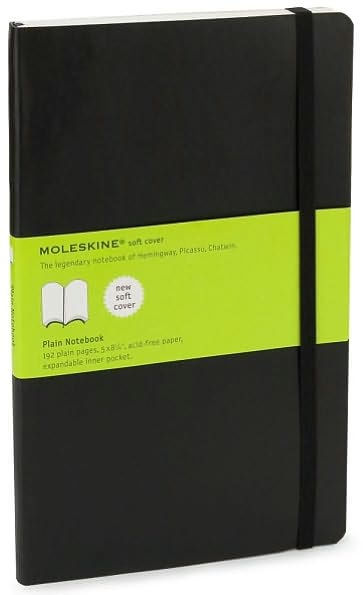 The Soft Cover large notebook with plain pages has a flexible yet sturdy cover that adapts to the movements of the body and fits comfortably in any pocket. This is a reliable travel companion, perfect for writings, thoughts and passing notes. Every Moleskine product is thread bound and has a soft cover with rounded corners, acid free paper, a bookmark, an elastic closure and an expandable inner pocket that contains the Moleskine history.